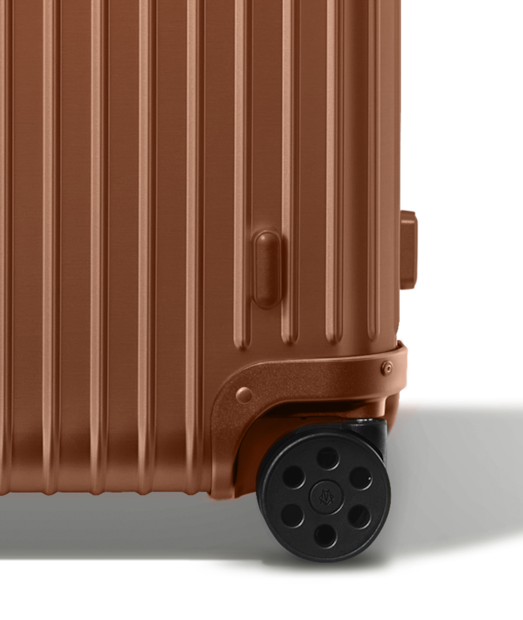 Pioneered by RIMOWA, this high-end system guarantees stable and effortless steering thanks to ball-bearing mounted wheels with cushioned axels.