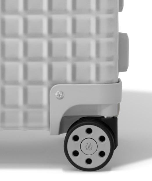 Dieses von RIMOWA als Erste entwickelte hochwertige System garantiert eine stabile und mühelose Steuerung dank der auf Kugellager montierten Rollen mit gefederten Achsen.