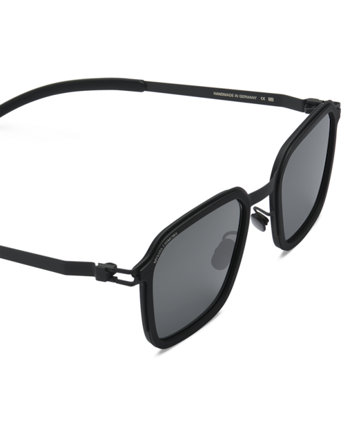 The MR002 Square sunglasses feature a black frame with black rings and black mineral polarized lenses for a timeless look with refined contrasts.