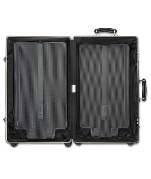 アルマイト加工を施した高品質なアルミニウムにレザーハンドルを組み合わせたRIMOWA Classicは、伝統的なデザインと精密なエンジニアリングが融合した逸品。