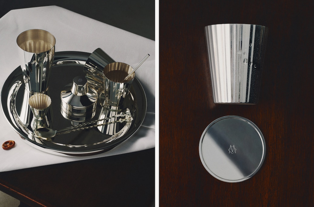 Inside, a microfibre-lined interior cradles the essentials for cocktails for two: an exclusively developed cobbler shaker with integrated strainer, one jigger, two tumblers, two engraved coasters, two silver straws and a hand-curved spoon that doubles as a muddler. Each accessory bears a co-branded engraving, specially created for the collaboration, while a care set of a polishing cloth and cleaning brush is also provided.