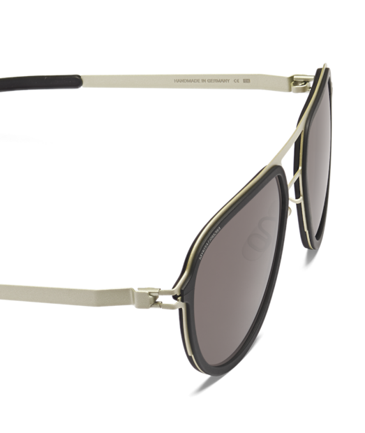 The MR006 Aviator sunglasses feature a Titanium frame with Black rings and cool grey solid lenses for a timeless look with refined contrasts.