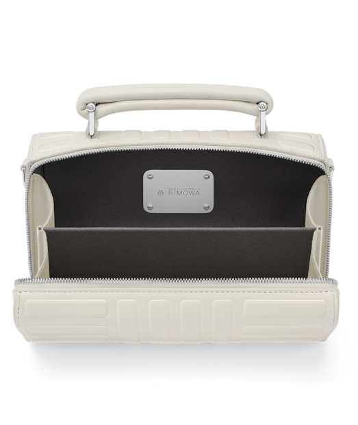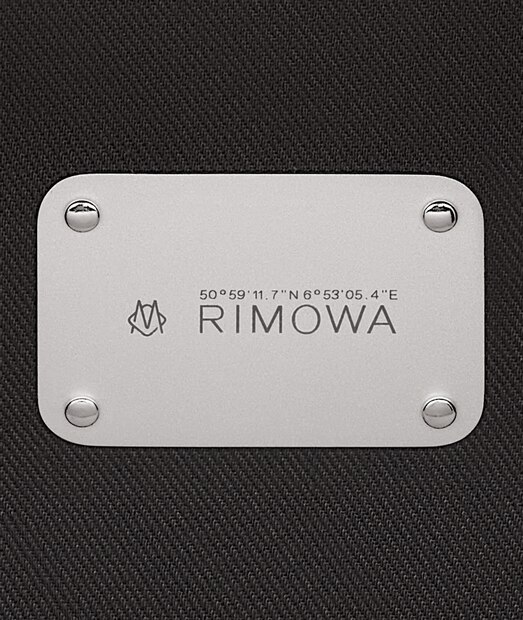A metal plate, fastened with four rivets inside the bag, bears RIMOWA's signature details – coordinates and a monogram that echoes the design of our suitcases.