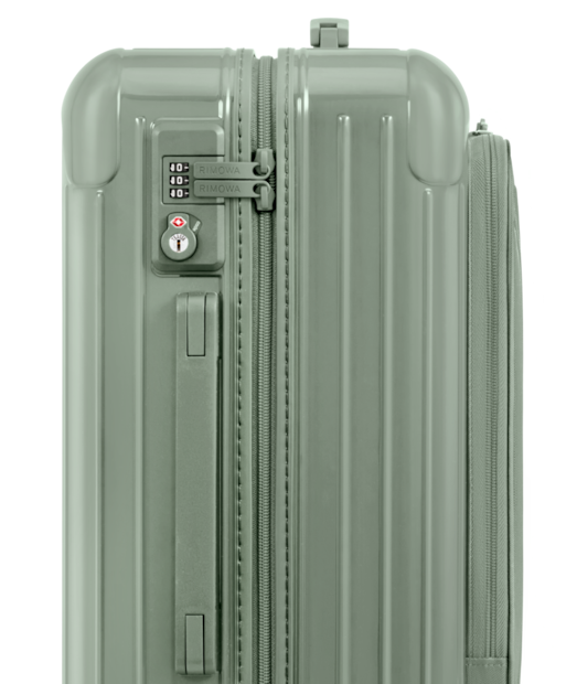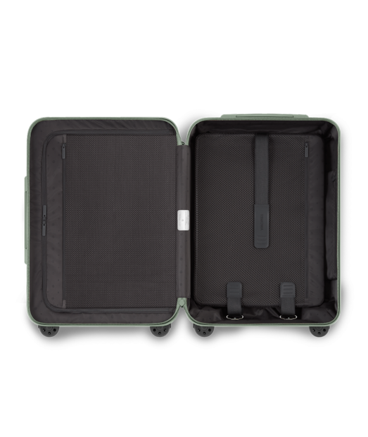 Ideal for 3 to 4 days of travel, the RIMOWA Essential Sleeve Cabin in gloss Eucalyptus green features a number of ingenious functionalities: